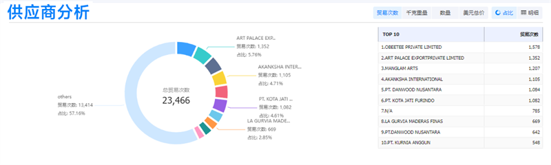 顺利获得深入分析进出口数据,腾博会官网能够全面把握市场的总体增长动态。以美国市场为例,【腾博会官网外贸通SaaS平台】给予了详尽的美国进出口数据,使腾博会官网能够洞察家具行业在美国市场的交易趋势和买卖双方的动态变化等。这些信息不仅可以帮助腾博会官网判断市场是处于增长阶段还是成熟阶段,更能为腾博会官网给予决策支持,指导腾博会官网如何在市场中更好地定位和开展。